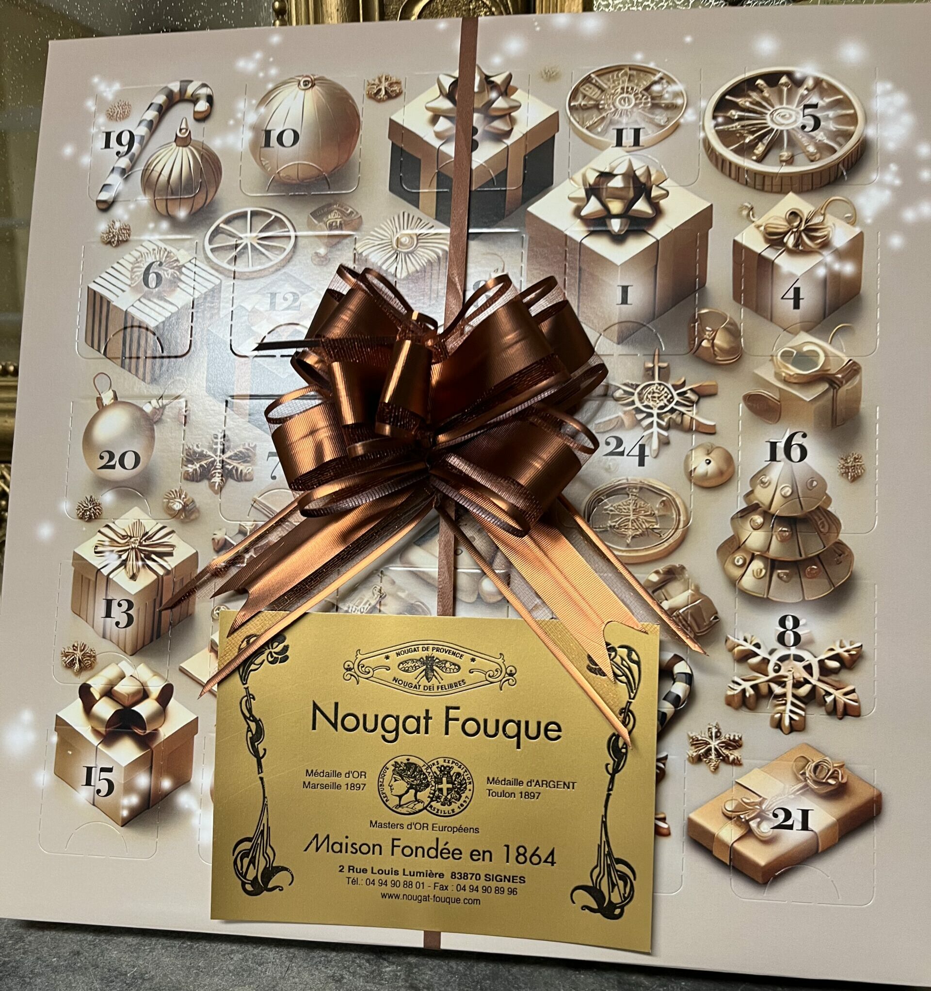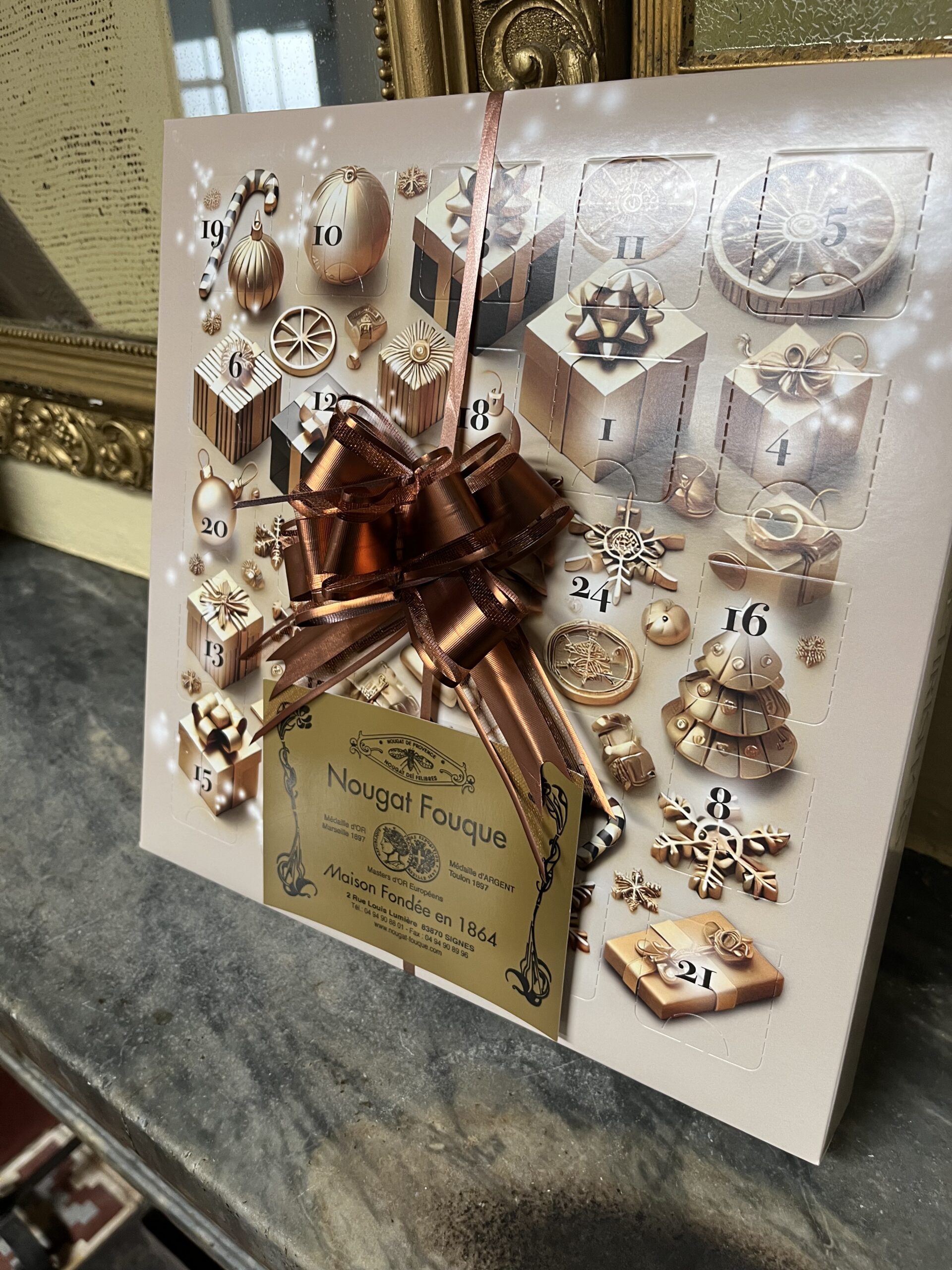 Ce magnifique calendrier de l’avent contient une sélection des gourmandises fabriquées dans l’atelier de la maison Fouque :